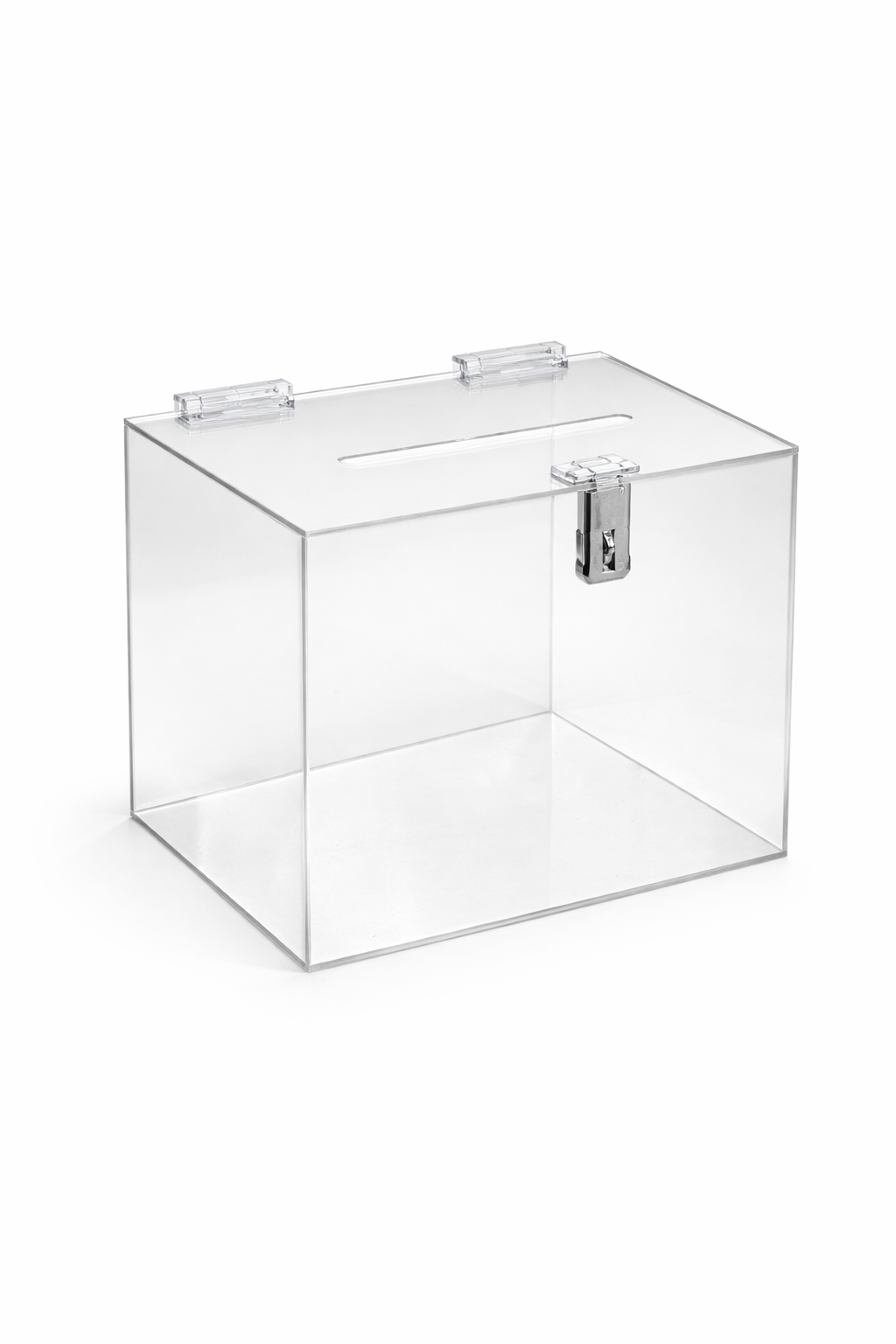 Crafted from durable, high-quality acrylic, this box is ideal for retail stores, offices, churches, schools, exhibitions, fundraisers, corporate events, birthdays, and baby showers. The convenient slot allows easy insertion of forms, cards, envelopes, or notes, while the spacious interior provides ample storage. Whether you’re gathering competition entries, collecting suggestions, hosting a lucky draw, or creating a memorable wedding keepsake box, this multi-purpose display solution combines practicality with a sleek, modern finish.